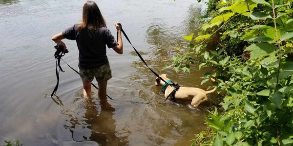 Nash is very affectionate and likes to be close to his humans. (You won't ever feel lonely in the bathroom again.) He loves outings: walks, the forest preserve and pup cups. We recently learned that he likes water and knows how to swim!
